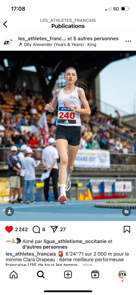 Clara DRAPEAU, record d’Occitanie sur 2000m